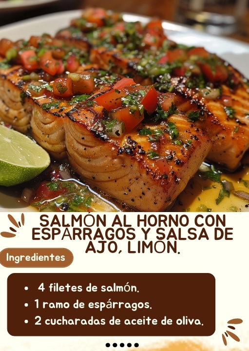 Deléitate con los exquisitos sabores de este Salmón al Horno con Espárragos y Salsa de Ajo y Limón. Esta receta es una combinación perfecta de salmón suculento, espárragos vibrantes y una sabrosa salsa de ajo y limón que tentará su paladar. Ya sea que estés organizando una cena o simplemente desees una comida deliciosa, este plato seguramente te impresionará.