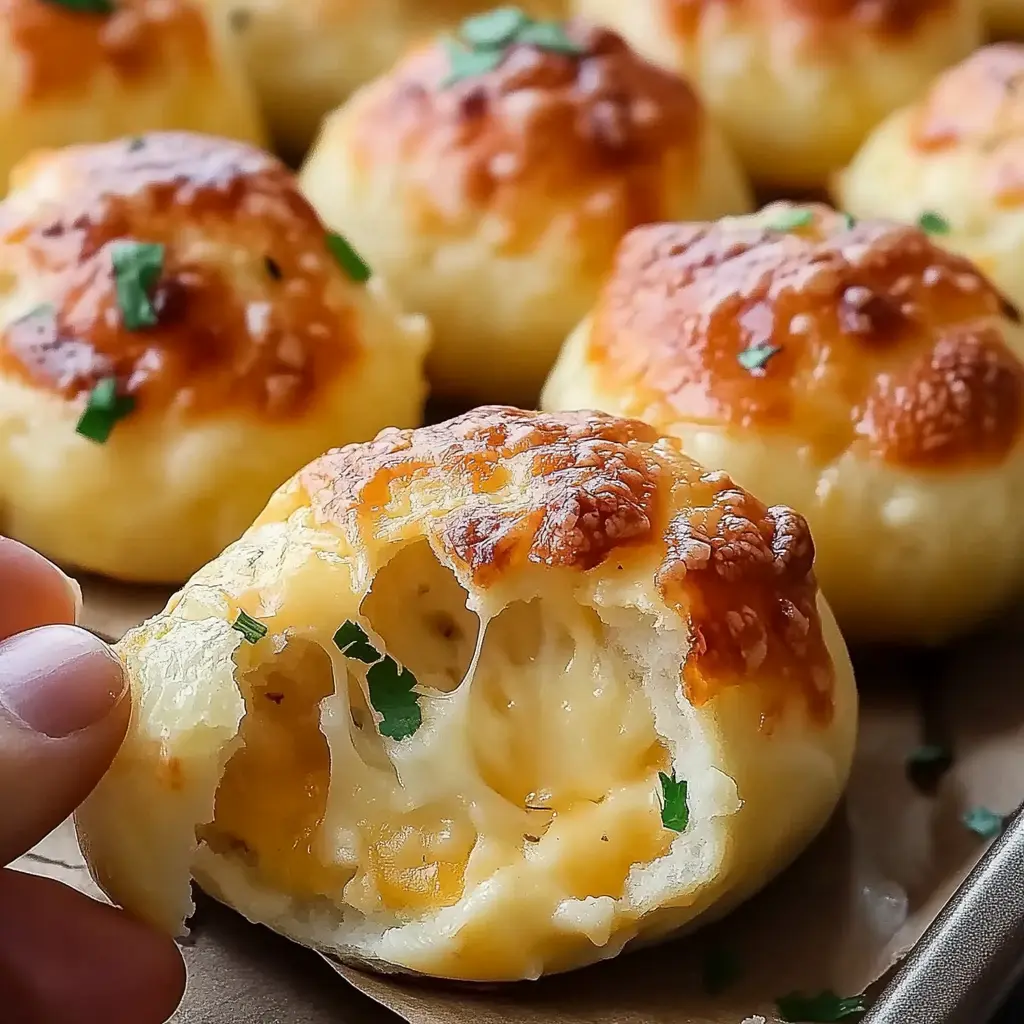 Step 7: Cool and Serve: Once the cheese bombs are golden brown, remove them from the oven and let them cool on the baking sheet for a few minutes before serving. This will allow the cheese to cool slightly and prevent it from being too hot to handle. Serve warm and enjoy!