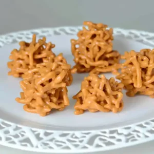 Description of this recipe: Butterscotch Haystacks are a delightful, no-bake treat that combines the satisfying crunch of chow mein noodles …
