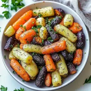 Description: This recipe features a vibrant medley of tri-colored carrots, roasted to perfection with aromatic herbs and a touch of …