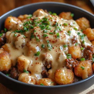 Description of this recipe:This Tater Tot Breakfast Bowl with Sausage Gravy is a hearty, comforting dish that combines crispy tater …