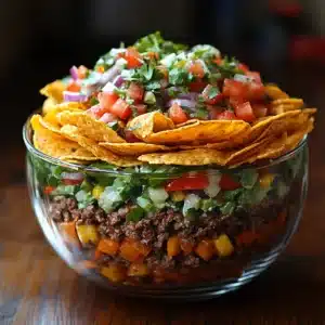 Description of this recipe:The Seven-Layer Taco Salad is a colorful and flavorful dish that combines all the best elements of …