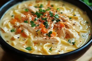 Description Crack Chicken Noodle Soup is an incredibly flavorful and comforting dish that combines the creamy, cheesy richness of “crack …