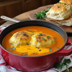 This recipe elevates classic tomato soup by adding fluffy, savory cheese dumplings that cook right in the soup, creating a …