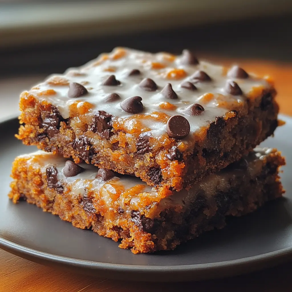 Enjoy baking and indulging in these delightful Chocolate Chip Carrot Cake Bars!