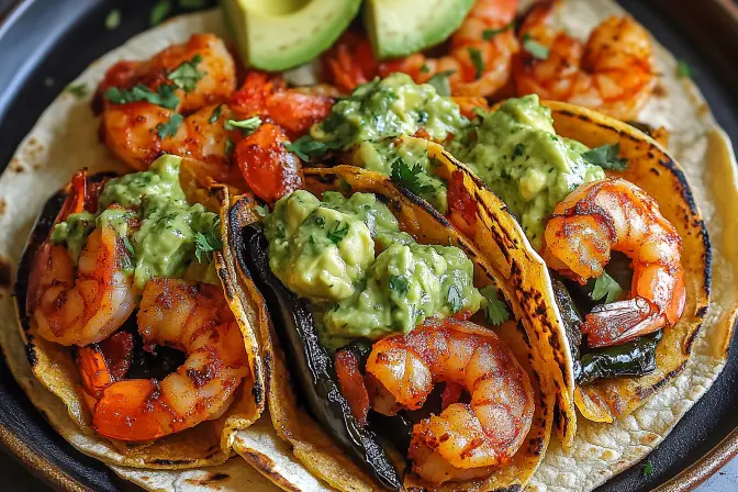 These Crispy Shrimp and Poblano Tacos are a delightful explosion of flavors and textures. Tender, seasoned shrimp meet the subtle heat of roasted poblano peppers, all nestled in crispy corn tortillas. But what truly elevates these tacos is the vibrant and creamy Avocado Cilantro Sauce, a cool counterpoint to the warmth and spice of the other ingredients. This recipe is perfect for a quick weeknight dinner, a casual weekend gathering, or any time you crave a vibrant, satisfying, and easy-to-make meal. The combination of crispy, savory, and fresh elements will make these tacos a new family favorite!