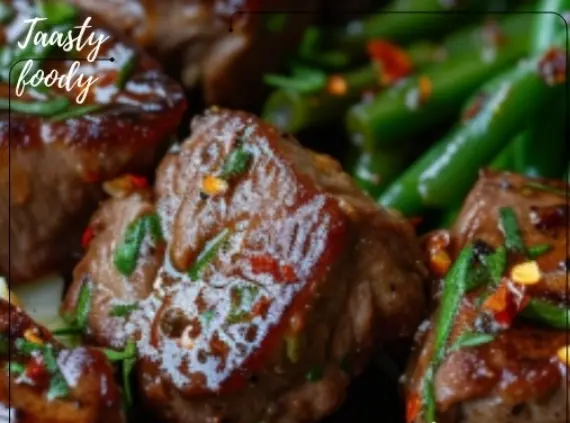 Garlic butter steak bites are a mouthwatering treat that combines the richness of butter with the bold flavors of garlic and savory steak. The addition of Worcestershire sauce and fresh rosemary elevates the dish, adding depth and complexity to the flavors. Paired with creamy mashed potatoes and crisp green beans, this meal is a wholesome and satisfying option for any occasion.