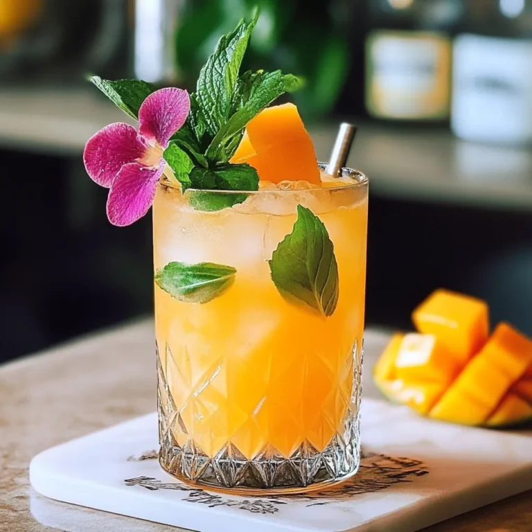 Description of this recipe: The Mango Rum Swizzle is a vibrant and refreshing tropical cocktail, perfect for warm weather gatherings or a relaxing evening at home. This delightful concoction combines the sweetness of mango, the zest of lime, and the invigorating punch of white rum, all balanced with the subtle bitterness of Peychaud’s Bitters and the aromatic freshness of mint. It’s not just a drink; it’s an experience, transporting you to a sun-drenched beach with every sip.