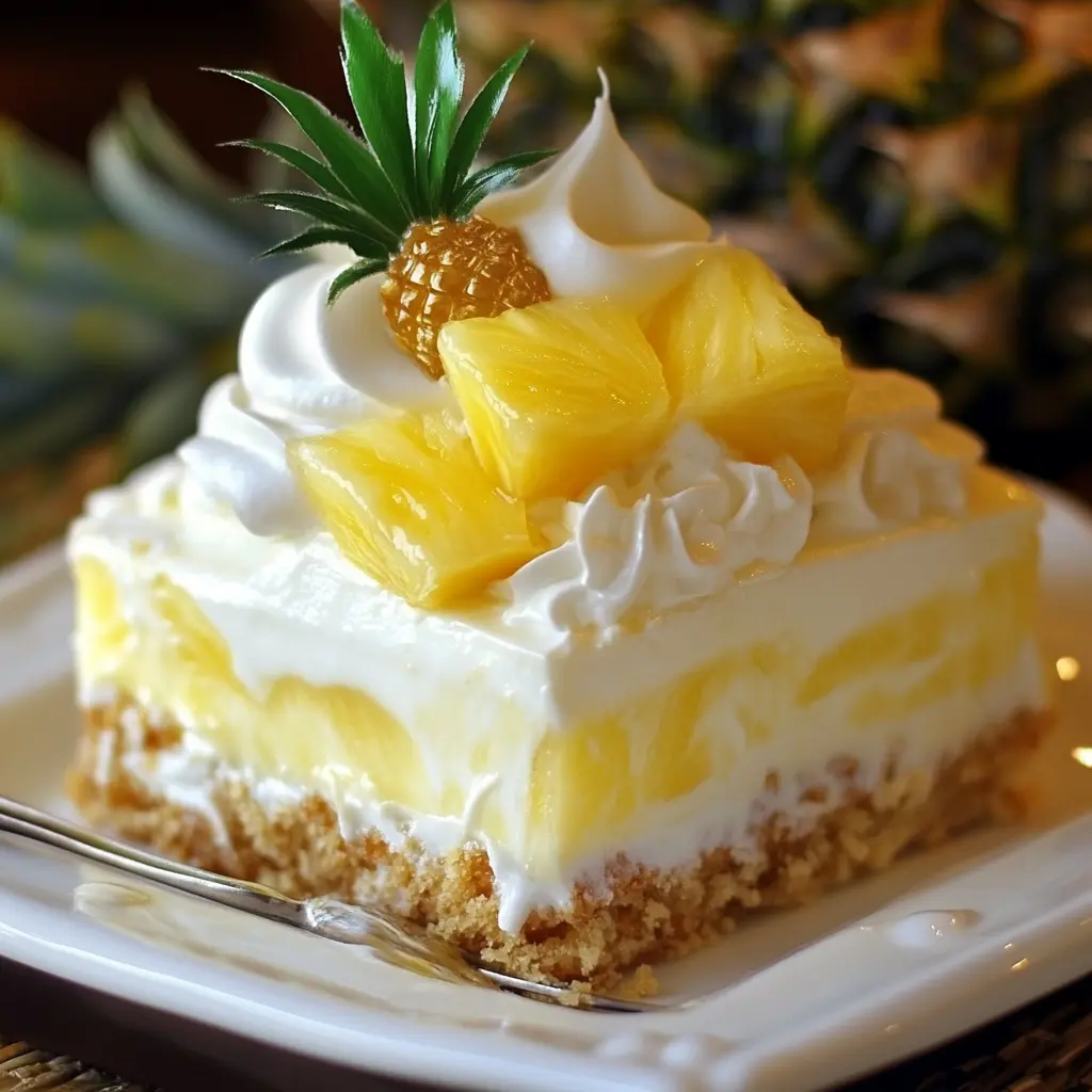 This No-Bake Pineapple Cream Dessert is best served chilled. Slice it into wedges and serve it on individual plates. For an added touch, consider garnishing each slice with a sprig of fresh mint or a sprinkle of toasted coconut for an extra tropical flair. It pairs wonderfully with a scoop of vanilla ice cream or a dollop of additional whipped topping for those who crave a creamier experience.