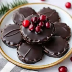 While the chocolate is still wet, quickly and carefully add the pretzel antlers to the top of the cookie. Place two candy eyes below the antlers and attach a red M&M (or similar red candy) in the center of the cookie to serve as the reindeer’s nose. Work quickly to ensure the decorations adhere to the chocolate before it sets.