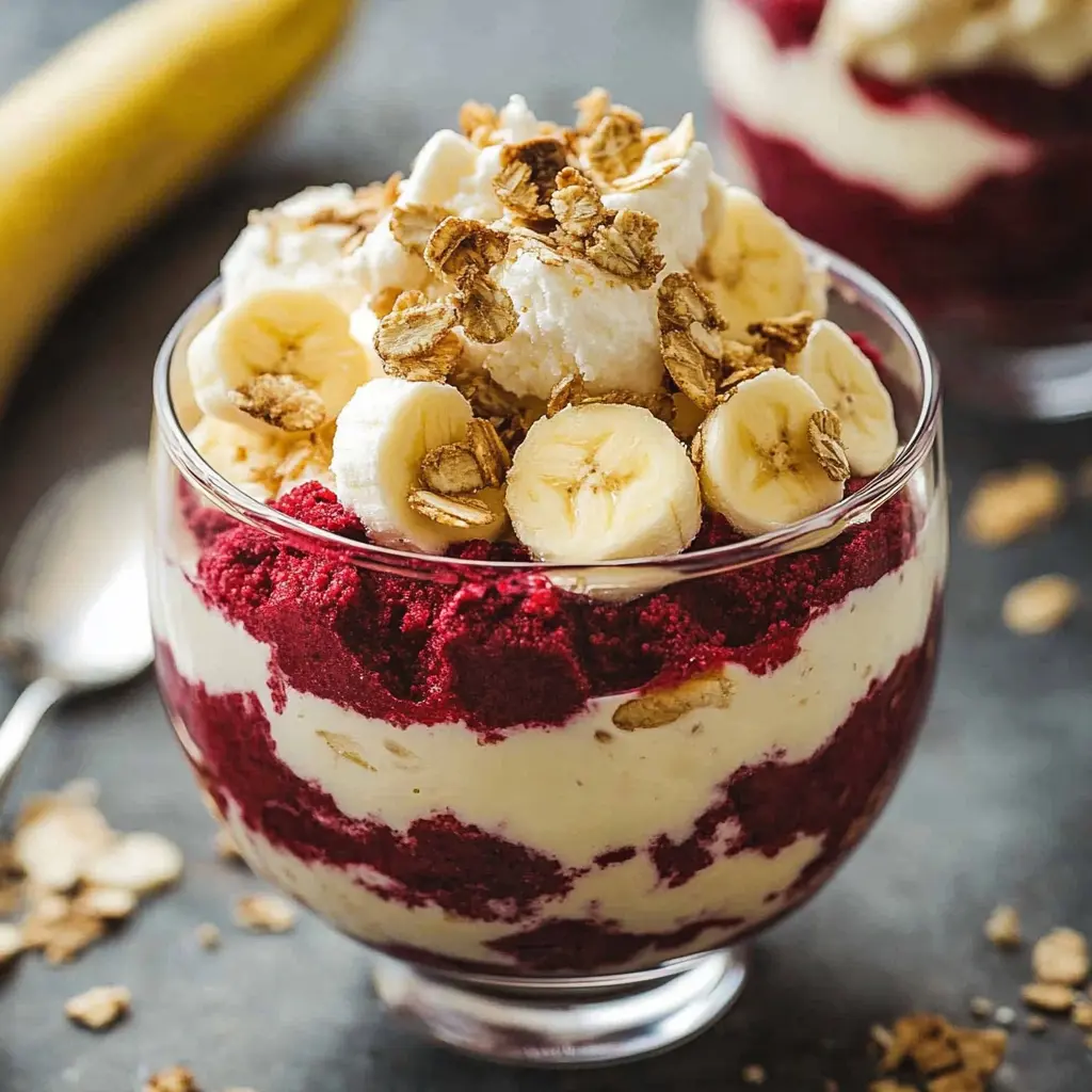 Step 6: In dessert cups or jars, layer 1/3 of the red velvet cake crumbs, followed by 1/3 of the banana slices, then 1/3 of the pudding mixture. This layering technique creates a beautiful presentation and ensures that each bite contains all the delicious elements of the dessert.