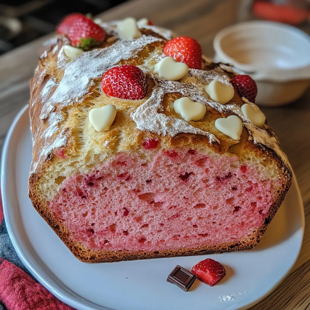 This delightful Sourdough White Chocolate Chips Strawberry Bread is the perfect treat for Valentine’s Day. With its soft, fluffy texture and a beautiful pink hue, this bread is not only visually stunning but also bursting with sweet strawberry flavor and creamy white chocolate. It’s a unique twist on traditional sourdough that is sure to impress your loved ones.