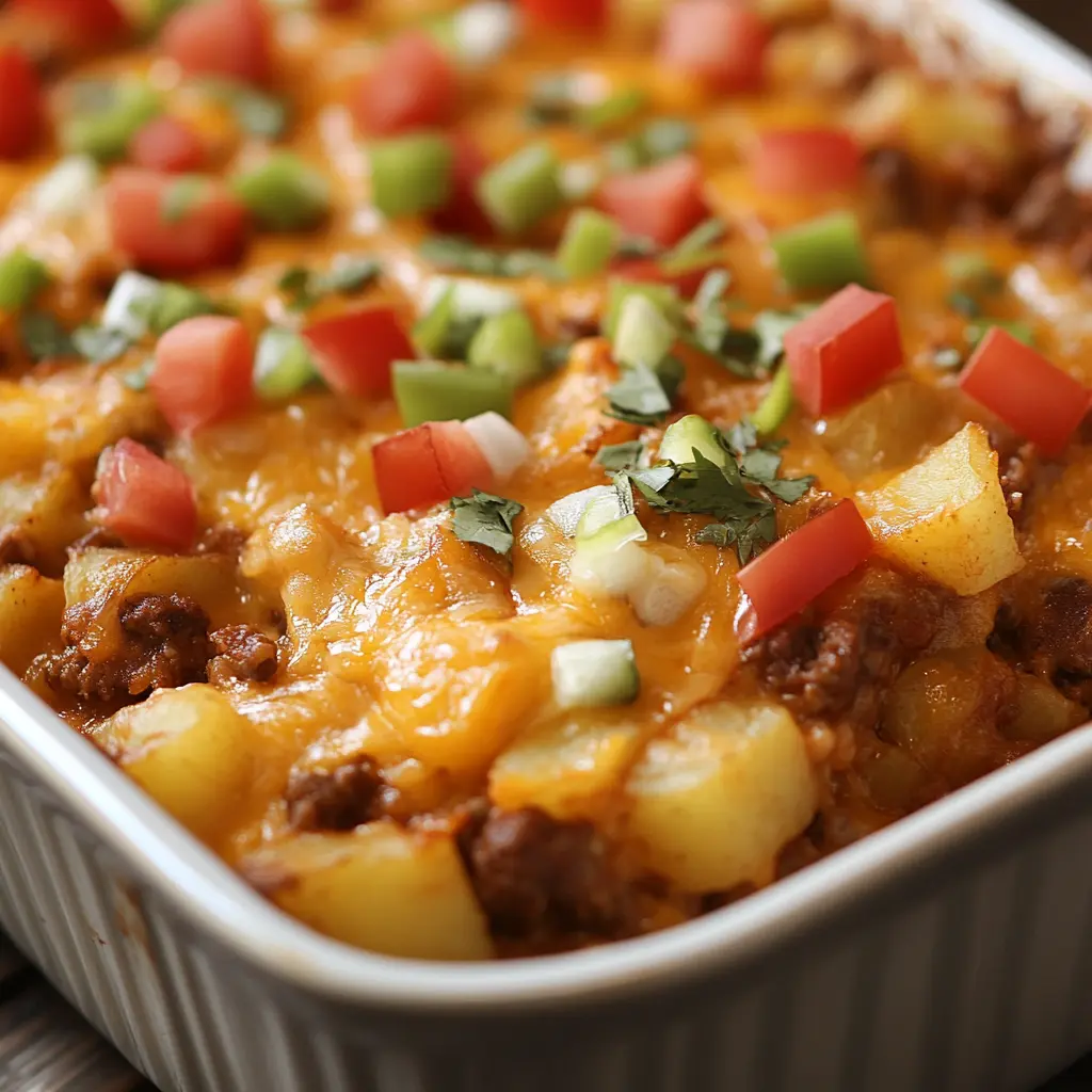 Casseroles have long been a staple in many households, offering a convenient way to prepare meals that are both filling and satisfying. The Taco Potato Casserole takes this concept to the next level by infusing it with the vibrant flavors of taco night. Imagine layers of seasoned ground beef, crispy hash browns, and gooey cheese, all baked together to create a bubbling, golden masterpiece. This dish is not only a feast for the taste buds but also for the eyes, making it a perfect centerpiece for any dinner table. Whether you’re a seasoned cook or a kitchen novice, this recipe is straightforward and guarantees a delightful outcome.