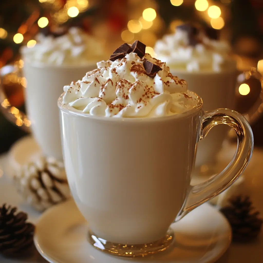 Serve this Winter Wonderland White Hot Chocolate with a side of freshly baked cookies or a slice of your favorite cake. It pairs beautifully with gingerbread or sugar cookies, making it an ideal treat for holiday gatherings or cozy nights in.